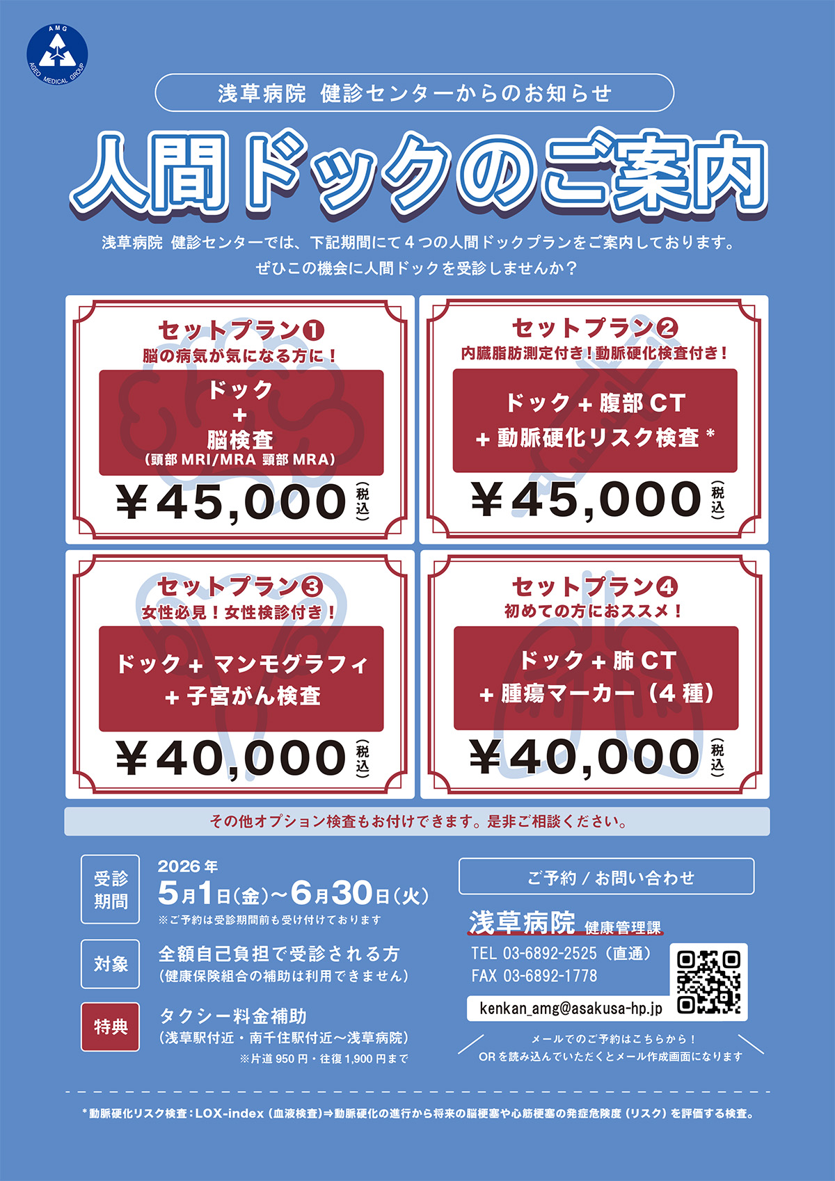 当センターでは、上記期間で4つの人間ドックプランをご用意いたしました。